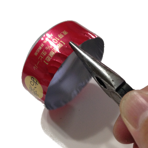 底になる部分の上1cmくらいをラジオペンチを使って段を付けはめ込みやすくしておきます。折れ目が底の方まで行ってしまうとそこからアルコールが出てきてしまうのでそうならないよう注意してください。