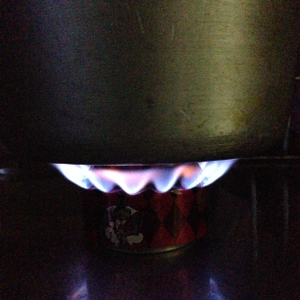 問題は消し方。市販品であれば消化蓋などがあるんですが、とりあえずコレにはない。吹き消そうとするとアルコールが飛び散って恐ろしいことになりかけました。そのうち蓋も作ろうかな。