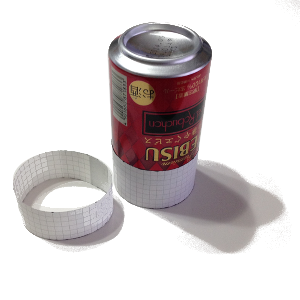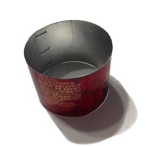 次に缶をひっくり返して4cm幅の帯をあて、印をつけます。